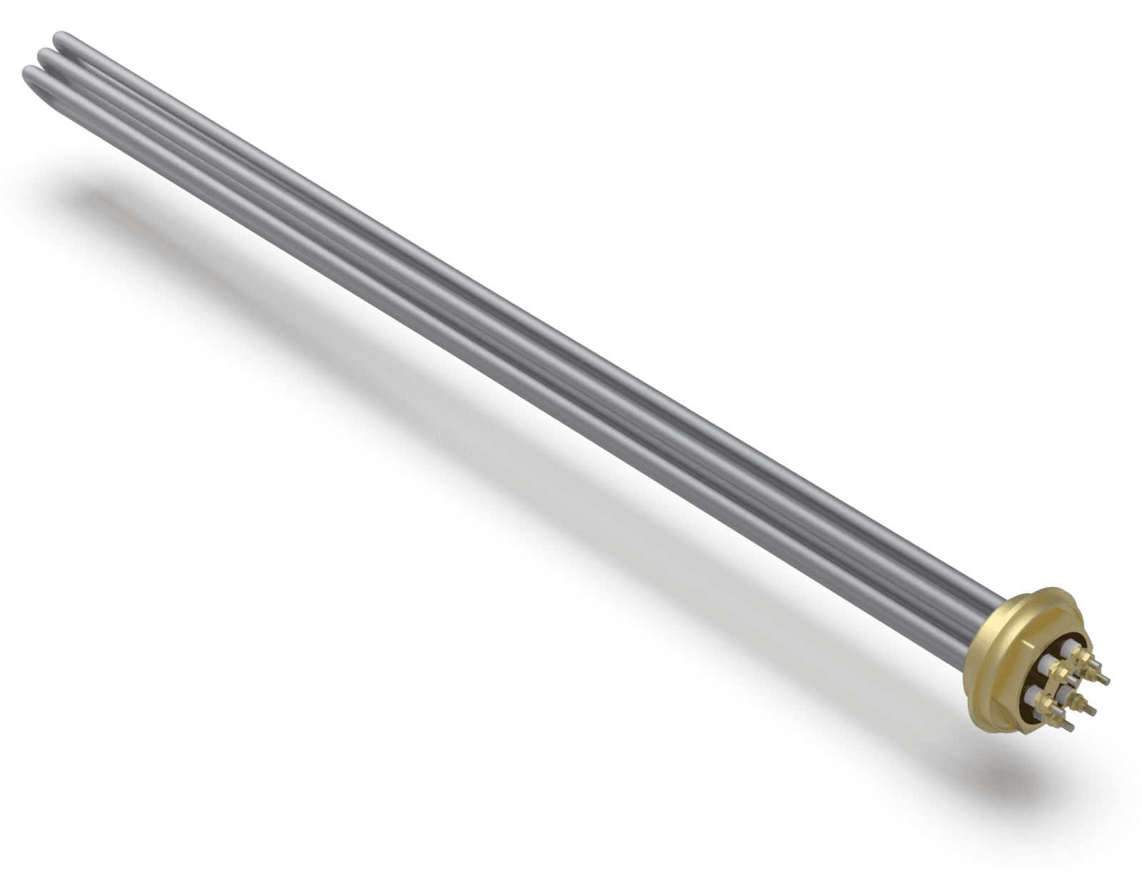 Three-phase screw-in heater on brass or stainless steel plug to suit Customer requirements