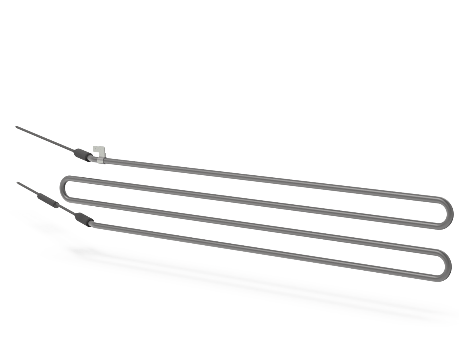 • Vulcanized heating element for evaporator desfrosting system, display case, counters defrosting system and snow gun