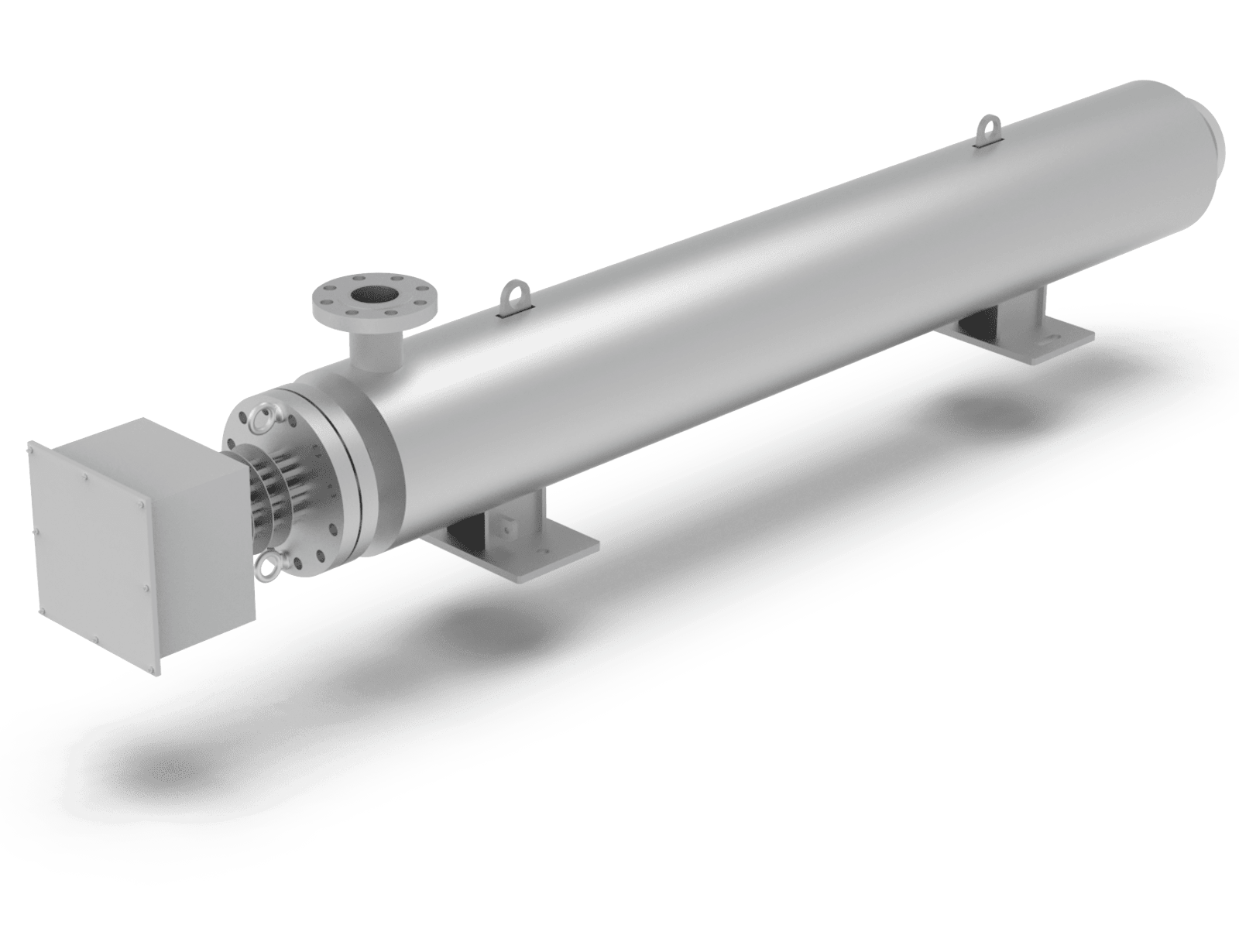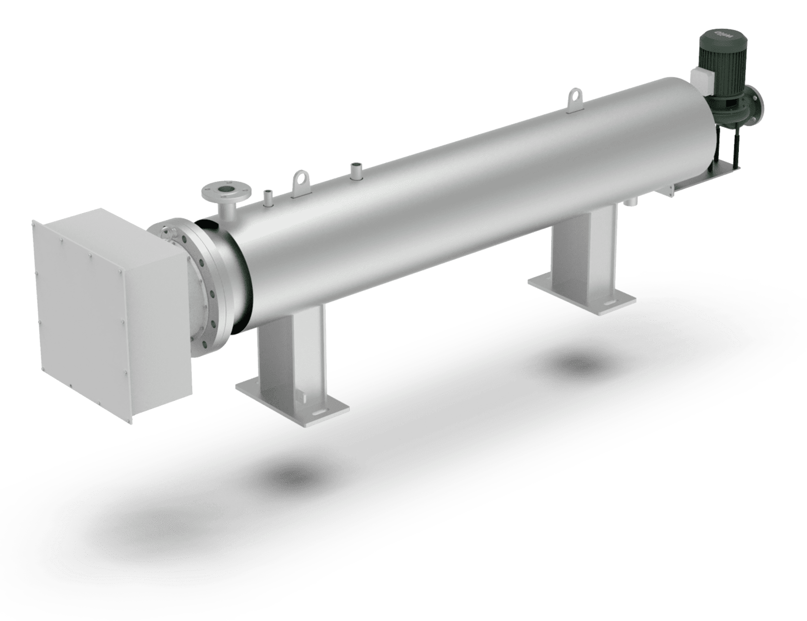 • Vessel made of carbon steel or stainless steel with threaded or flanged (tri-clamp, DN or ASTM compliant) inlet / outlet connections, saddles and lifting eyes, vent and drain manifolds
